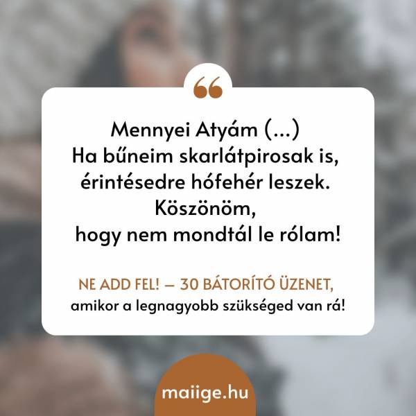 Kedves Tini Mai Ige csapata! Köszönöm!! Többször volt hogy alig vártam hogy a másnap is elolvashassam. Annyira jó a végén egy összegzés és néha egy-egy feladat. Forrest Frank-et jó hogy beleírtátok mellesleg Spurgeon könyvét ajánlottátok -Isten ígéreteinek tárházát. Már múlt héten is kaptam rá jelet hogy olvassam el de most elő is vettem. Mer régóta megvan a könyv de még nem igazán szántam eddig időt rá. Isten áldja a szolgálatokat. Phil Wichman is nagyon jó keresztény énekes. P.D.