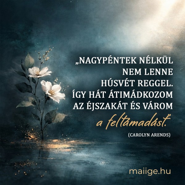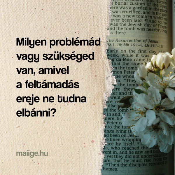 Lehet, hogy most még nem érted, miért borult fel minden körülötted, de Isten nem a régi rend helyreállításán dolgozik, hanem valami sokkal dicsőségesebb újnak az előkészítésén. A feltámadás üzenete ma is ugyanaz: ahol mi lezárást látunk, ott ő új kezdetet munkál. Bízz benne, mert, ami ma zavarba ejt, abból holnap öröm fakadhat.